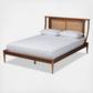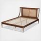 Craft a lovely bedroom atmosphere with the stunning design of the Jamila bed. This bed is constructed from sturdy wood. Curved bars add a cool, modern silhouette while the woven synthetic rattan headboard lends a light and airy quality. The Jamila requires assembly and utilizes wood slats for mattress support, which eliminate the need for a box spring. Turned legs add an elegant touch, making the Jamila bed a delightful addition to any space.