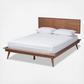 A contemporary rendition of retro mid-century style, the Karine bed brings clean lines and warm wood tones into your bedroom. Crafted from sturdy wood, the Karine features a low platform set on top of angled, tapered legs. The headboard features chic inset detailing and is attached to the bedframe with two narrow support bars, providing a cool, floating effect. Its classic walnut brown finish is easy to coordinate with any color palette. Add some crisp white sheets and a plush duvet to complete the look. This bed includes wood slats, which eliminate the need for a box spring.