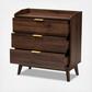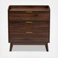 Rich wood tones are paired with a retro silhouette in the Lena chest. Constructed from engineered wood, the Lena displays an elegant walnut brown finish that complements any color scheme. Three drawers present ample space to store clothes, linens, and more. Each drawer is fitted with metal glides for smooth movement, as well as a gold-tone metal handle for a touch of refinement. Angled, tapered legs showcase the iconic mid-century look.