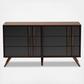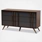 With an ultra-modern, two-tone finish and ample storage space, the Naoki dresser is sure to make an impression in any space. This wood dresser features five spacious drawers to store clothes, linens, and more. Each drawer is fitted with metal glides for smooth movement. A two-tone grey and walnut finish are paired with long, double vertical handles for a cool, contemporary look. Requiring assembly, the Naoki dresser is supported by splayed legs that create a chic, retro profile.