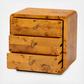 The Netra nightstand illustrates the raw beauty only endowed by nature. This modern piece consists of real natural burl wood. 3-Drawers adeptly organize all your bedside essentials while reserving the tabletop for nightly use. The Netra will arrive fully assembled and showcases the rich knots and rolling grain unique to burl wood, resulting in no two pieces being exactly alike. Round, metal drawer pulls stand out brilliantly against the wood, making the Netra nightstand an incredible bedroom fixture.