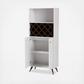 Unleash mid-century modern style in your wine storage with the Serafino wine cabinet. Constructed of engineered wood for durability, the Serafino features wine rack storage for up to ten bottles of wine. Two concealed shelves provide additional storage for decanters, bottle openers, and more. An open top shelf provides space to display your best stemware. Inspired by mid-century modern design, the cabinet features angled, tapered feet. Assembly is required.