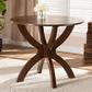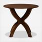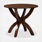 Smooth curves and a sleek finish define the Tilde dining table. The Tilde dining table is built from sturdy wood and comfortably seats up to four. A brown finish and round tabletop give the table a contemporary look while also providing ample elbow room for each member of the table. The tabletop is supported by an intersecting base, creating a chic, sculptural effect. Requiring assembly, the Tilde dining table is well suited for both casual and formal dining.
