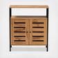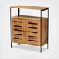 With a compact and stylish design, the Vander shoe cabinet is a convenient upgrade for busy entryways. The Vander features a sturdy wood frame supported by sleek black metal legs. Two open shelves and two additional shelves behind the doors provide space for about eight pairs of shoes, depending on size. Requiring assembly, the Vander features a slatted wood door that enables air circulation and prevents odor buildup. An easy solution to entryway storage, the Vander shoe cabinet accommodates the modern home in superb style.