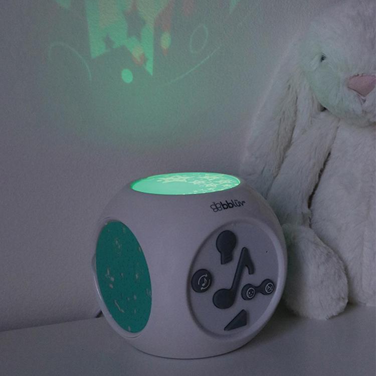 Help baby fall asleep peacefully using the Kube! Our music box plays soft soothing music while projecting soft images on the ceiling to help lull baby to sleep. With its sound-activated option, the Kube can also help soothe baby back to sleep during naptime and throughout the night.