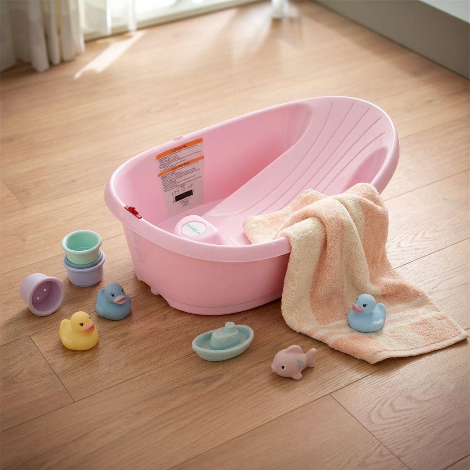 Meet the Onda Baby Bath, a premium, made-in-Italy bath that's now available in the U.S. in partnership with BEABA®. Engineered for your baby’s comfort and safety, the Onda grows with your little one from birth through 12 months. No extra pieces, no complicated setup, just one smart bath. It features integrated support for newborns to keep them perfectly positioned, and as they grow, a central post creates a safe, upright seat for babies from 6 to 12 months. Want to know if the water is just right? A built-in thermometer takes the guesswork out of bath time. The Onda's bath's ergonomic design, built-in safety features, and timeless Italian quality make it the perfect solution for your baby's first year of baths.
