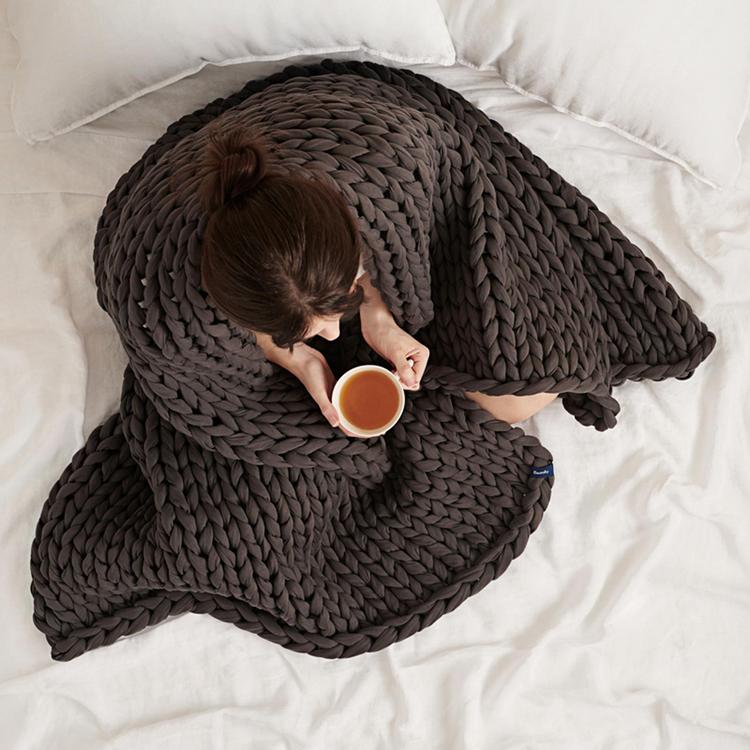 A knitted weighted blanket to help you sleep better and feel calmer, naturally. Bearaby’s patented weighted blankets are ultra-breathable. They use a chunky-knit, filler-free design that allows for increased airflow, keeping you cool and comfortable all through the night.
