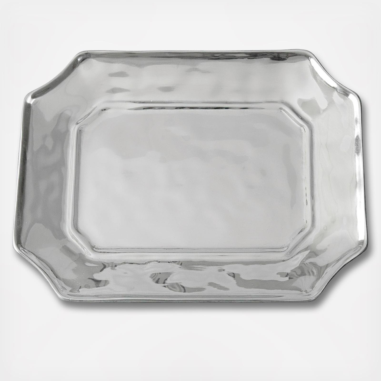 The Beatriz Ball GIFTABLES Soho Lucca Rectangular Tray decorative tray makes a perfect gift, handy metal serving tray, or eye-catching accent piece. From Beatriz Ball's popular Giftables Collection; handmade and artfully designed items at irresistible prices. Packaged in a lovely gift box! Anyone on your gift list would love to receive this elegant and versatile GIFTABLES tray with distinctive Soho Lucca styling. A handsome, multifunctional piece featuring a hammered surface, notched corners, and a gently raised border, the tray is Beatriz Ball's contemporary take on a classic design. Use for serving cream cheese and pepper jelly, cookies, or canapés. Great for the vanity, or powder room, too! An original design by Beatriz Ball, handmade of a top quality, FDA safe, easy-care, oven and freezer friendly aluminum alloy.