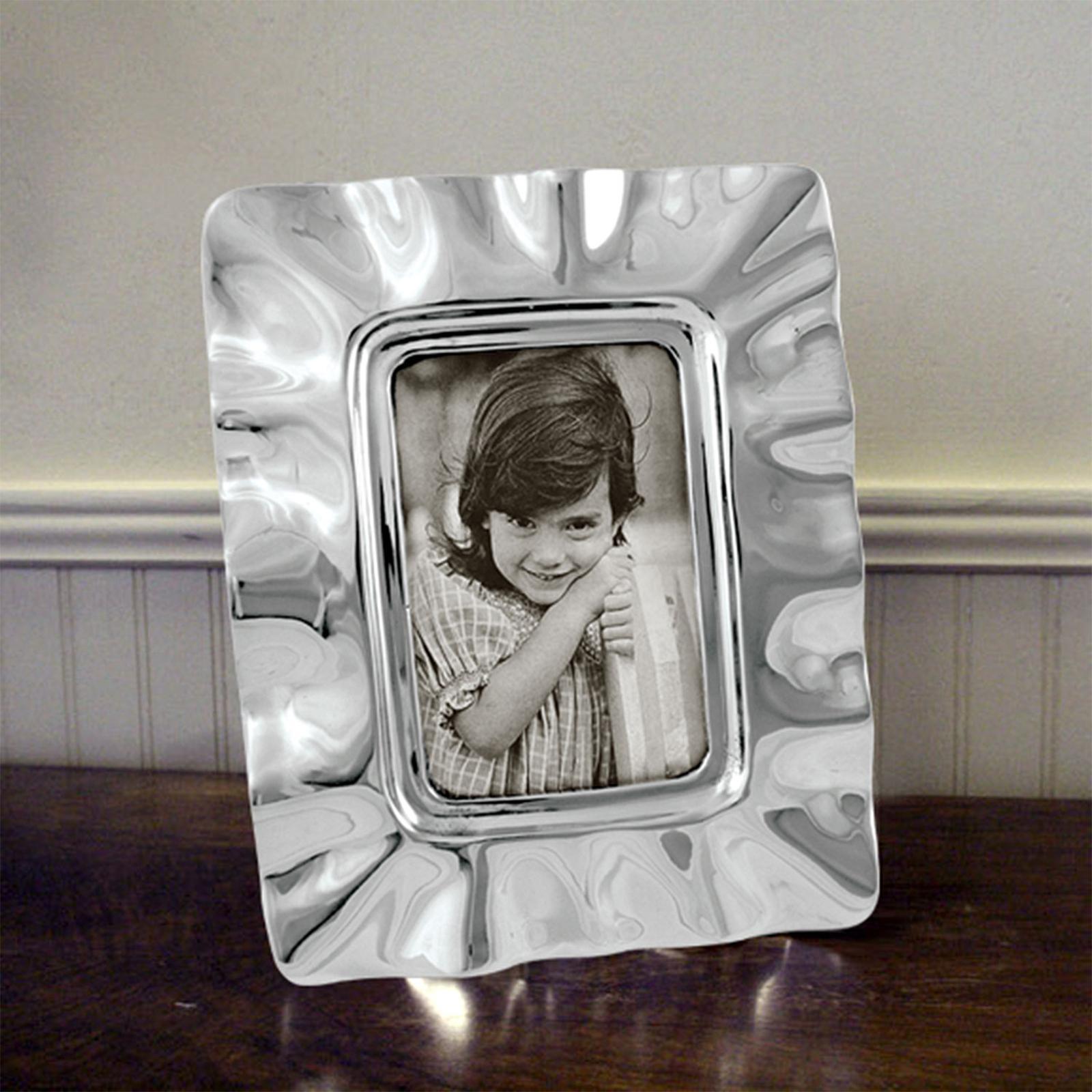 The Beatriz Ball VENTO 4x6 inch silver decorative frame shows off your favorite photo in shimmering, sophisticated, hand-polished surroundings. Show off your favorite 4x6 photo in shimmering, hand-polished surroundings. Sophisticated styling and superior craftsmanship makes this a perfect gift for someone special. Made of an FDA safe, easy-care, oven and freezer friendly aluminum alloy.