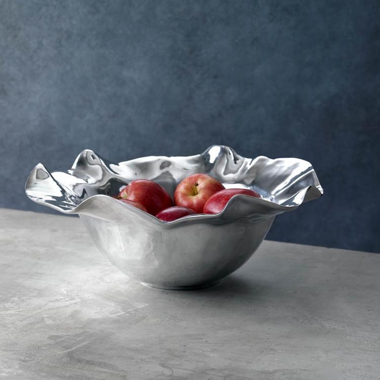 Flirty curves and a gently ruffled surface characterize the stunning, new VENTO Olanes Large Bowl. Great for serving everything from crisp chips to garden salads, this Beatriz Ball large decorative silver bowl will instantly become an essential element for your entertaining. Makes a unique gift for anyone on your list. A great gift on its own, pair with any of theOlanes items for a fabulous set. Made of a top quality, FDA safe, easy-care, oven and freezer friendly aluminum alloy.