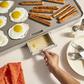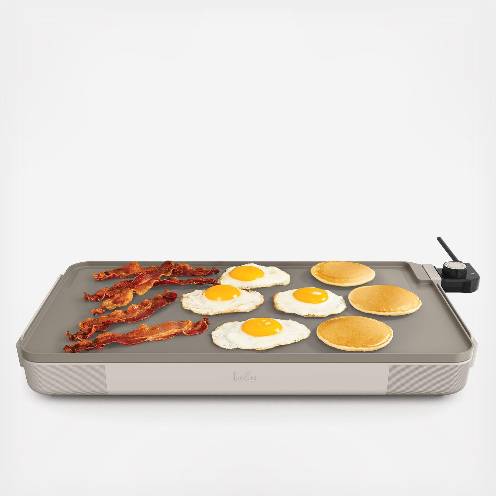 Breakfast for a crowd? But make it fast and easy? Yes and yes with the bella Electric Griddle. The generous cooking surface fits 10 eggs or 6 pancakes or a little of both for a hearty meal. The surface features our EverGood™ Ceramic Nonstick Coating that’s made without PFAS, PFOA, PTFE, lead and cadmium. It also has a 1500 watt heating system, cool touch handles and the base has a built-in ledge with backstop for easy flipping. The removable temp probe with easy-to-use dial allows for precise temperature control.