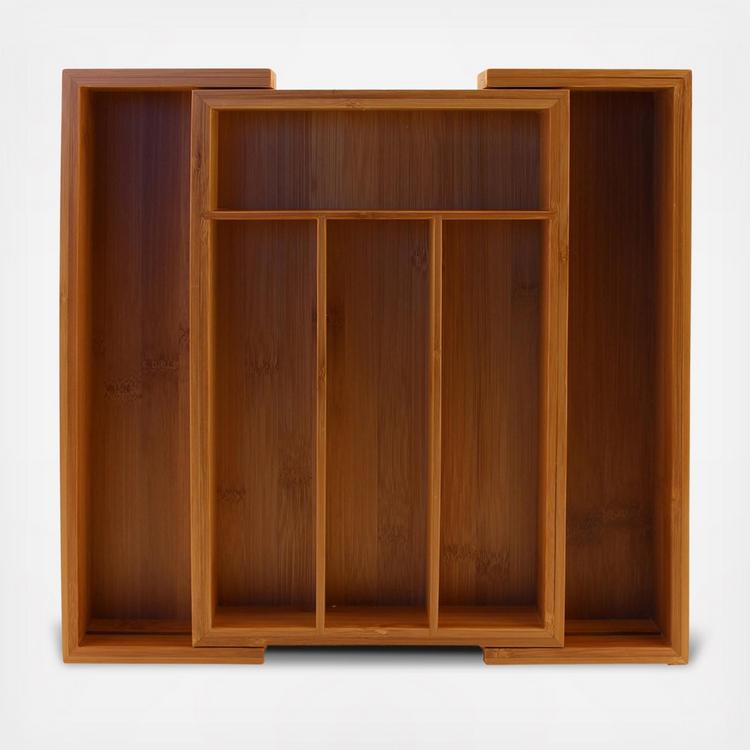 No need to pre-measure when buying this ingenious flatware organizer; in a stroke of design brilliance, the renewable bamboo tray expands to accommodate various drawer widths and utensil sizes!