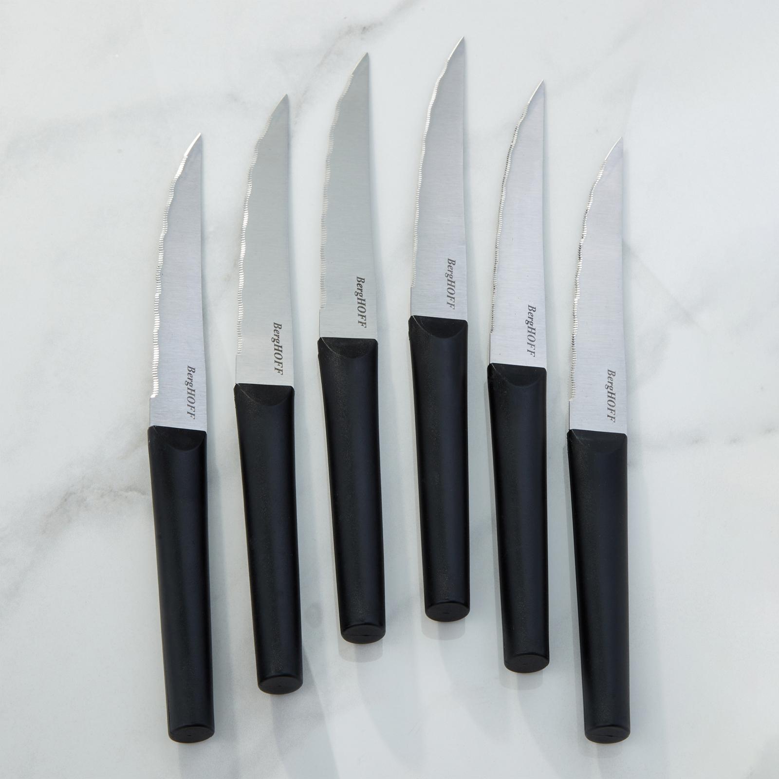 DiNA Matrix presents a set of 6 stainless steel steak knives, designed to elevate your dining experience with exceptional precision and style. Each 4.5" knife is crafted from high-quality stainless steel with a serrated edge, ensuring effortless slicing through steaks and other meats. The ergonomic, comfort-grip PP handles provide a secure and comfortable hold, enhancing ease of use with every cut. Perfect for both everyday meals and special occasions, these steak knives blend functionality with modern design to complement any table setting. Experience the perfect combination of quality and comfort with the DiNA Matrix steak knife set. Set includes: 6x Steak Knives 4.5" Set of 6 stainless steel steak knives 4.5" with ergonomic, comfort-grip PP handles.