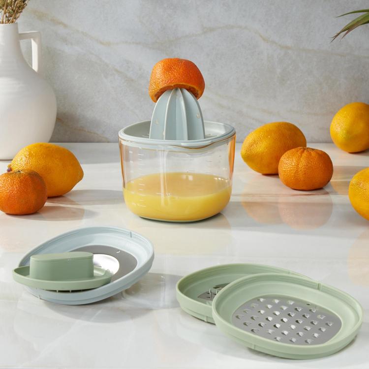 Take the stress out of prep with the BergHOFF 6-Piece Kitchen Helper Set. This set is a compact, all-in-one solution for measuring, mixing, zesting, separating, and more. Whether you are tackling a new recipe or just whipping up breakfast, this smartly designed set brings together six essential tools in a clever nesting design that keeps your kitchen neat and your workflow smooth. Each tool is crafted for comfort and control, from the measuring cup with easy-to-read markings and pour spout to the ultra-sharp stainless steel graters for effortless zesting or shredding. The non-slip base keeps your tools steady while you work, reducing spills and boosting confidence in every chop, grate, or mix. Designed with everyday cooking in mind, each piece are all stackable to save space in drawers or cabinets. Perfect for small kitchens, meal preppers, or anyone looking to streamline their cooking routine.