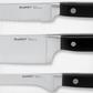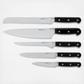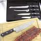 German carbon stainless steel Bread Knife, Chef's Knife, Utility Knife, and Paring Knife with triple-riveted ABS handles. Satin finish. Full tang design. Corrosion resistant blades and triple riveted handles for strength and durability. Versatile set of knives. Serrated blades slices through tough surfaces without crushing or damaging delicate inside. Long, straight and sharp edged blades ensure a precise cut, slice, chop or mince. Hand-wash recommended with mild soap, warm water and nonabrasive sponge.