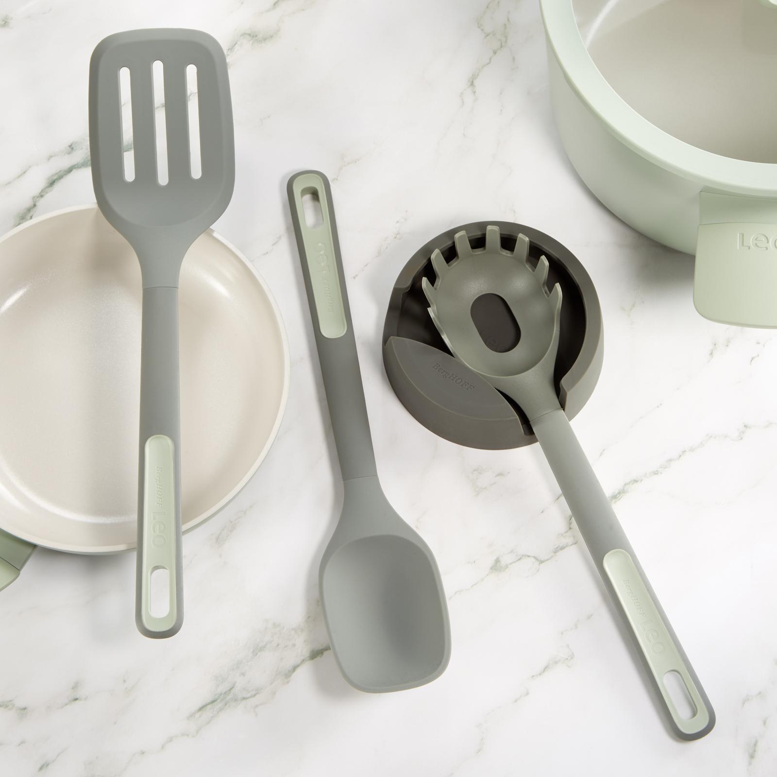 This Leo Balance 3-Piece Non-stick Nylon Serving Utensil Set is a must-have in any kitchen. Whether you're whipping up classic spaghetti Bolognese, creamy spinach tagliatelle, or a delightful prawn linguine, the Leo pasta spoon ensures precise servings and effortless noodle lifting. Plus, our serving spoon, crafted partially from recycled PP, swiftly dishes out mashed potatoes, rice, and stews. Featuring heat-resistant silicone, soft-touch rubber handles, and non-scratch design, these utensils are kitchen essentials for flipping burgers, frying eggs, and baking cookies. The slotted turner effortlessly slides under foods, while its slots drain excess liquids. Elevate your kitchen with the colorful Leo Balance range and join us in supporting a greener tomorrow!