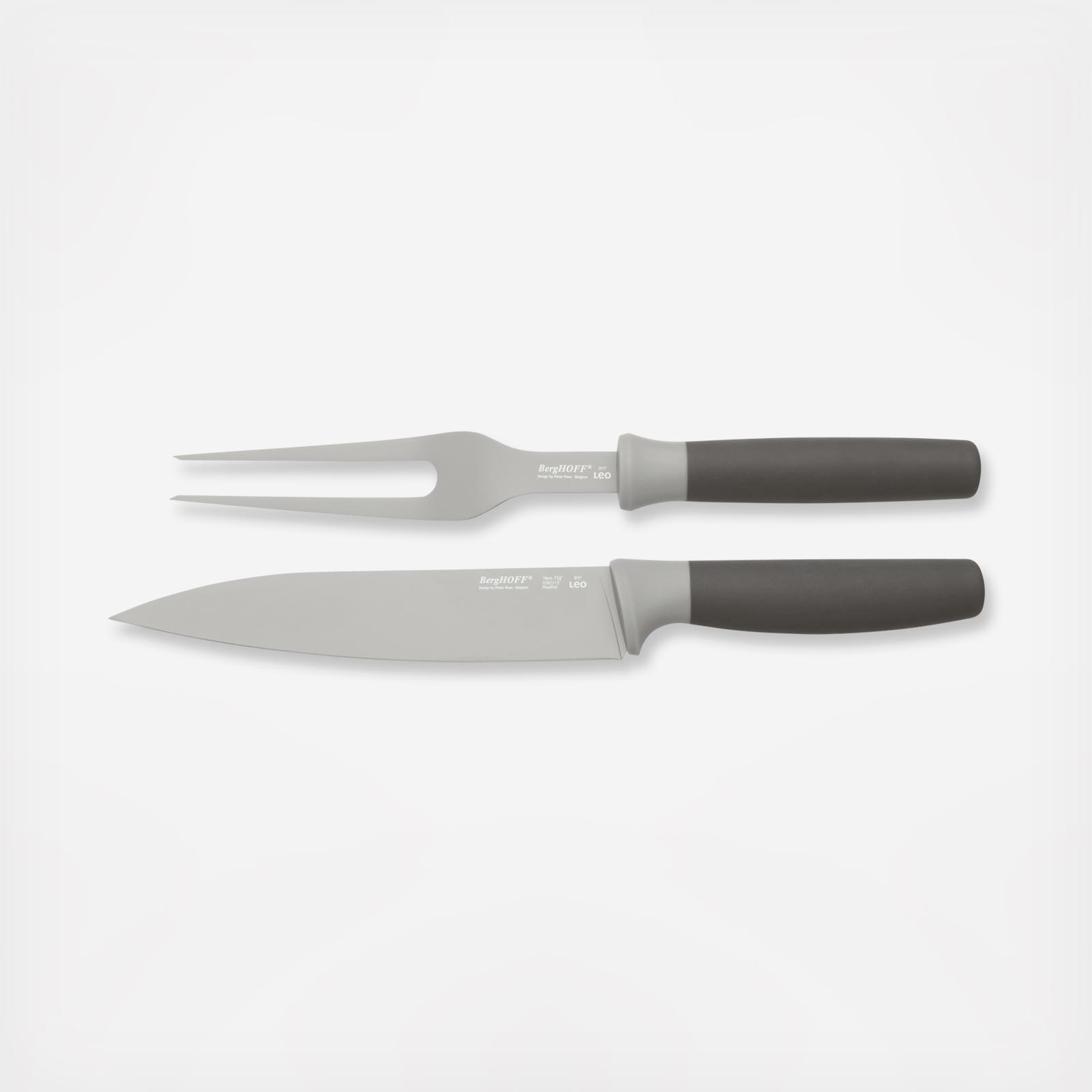 Slice your turkey, ham, or Sunday roast as thin as you want with the Leo carving set. The carving fork holds your meat securely in place with its two sharp tines while you use the thin sharp blade of the carving knife to carve the meat precisely. Both the carving fork and carving knife have a soft-touch handle that’s comfortable to hold in your hand and well-balanced. Gather everyone around the dinner table and impress them with your carving skills.