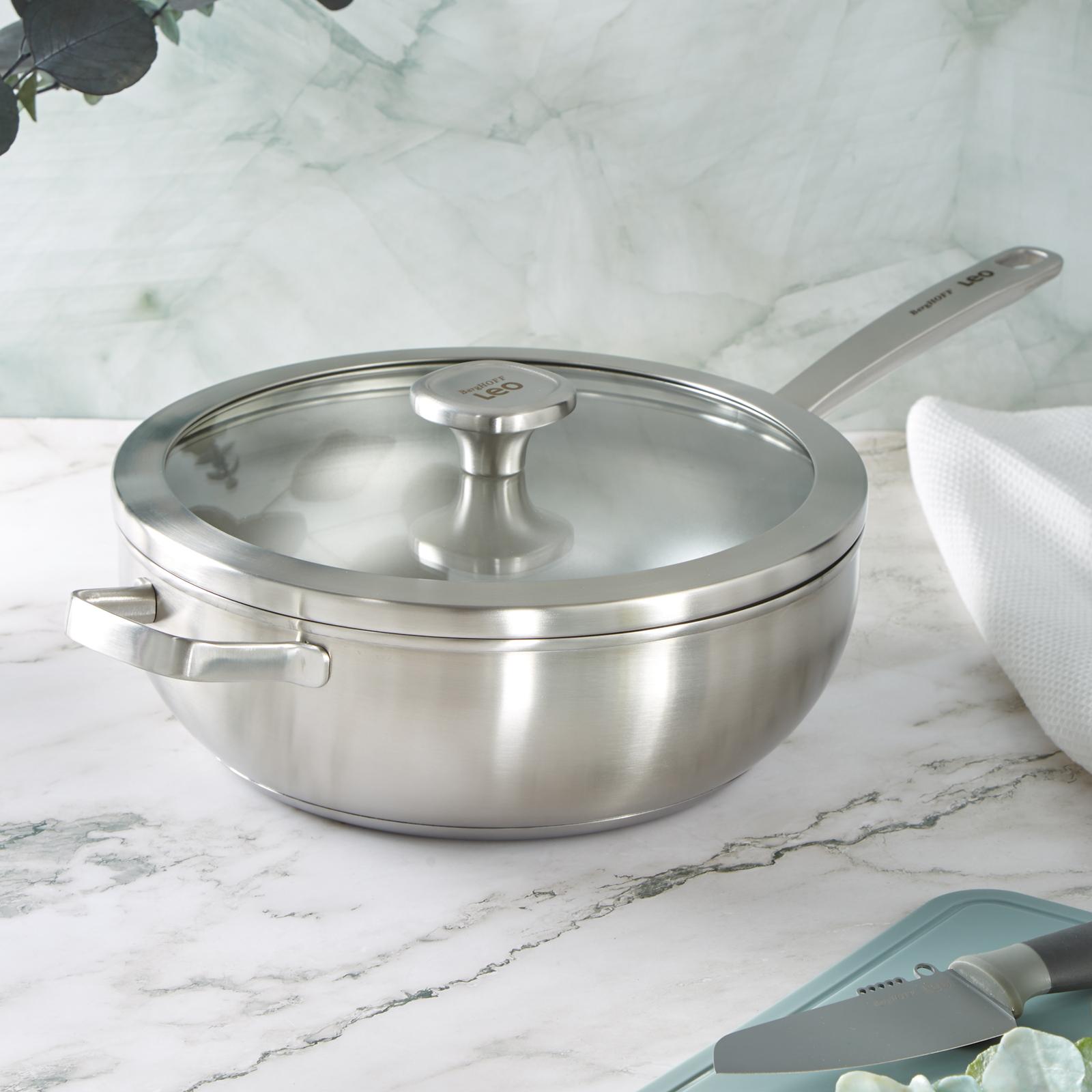 Leo Graphite Wok Pan, the perfect kitchen companion for those who want to create quick and healthy one-pan meals for the whole family. This stir-fry pan not only helps you cook delicious meals, but also contributes to a sustainable lifestyle. The sturdy stainless steel handle provides a comfortable grip and makes it easy to toss and serve your ingredients. With measurement markings on the inside, you can easily keep track of the quantities as you cook. Featuring a full disk bottom that guarantees fast, even heat distribution on any type of cooktop. Easily finish your dishes off in the oven for an extra touch. Whether you are stir-frying vegetables, deep-frying crispy chicken, or sautéing shrimp, this pan can handle it all. Handwash recommended. The Wok Pan is truly a must-have addition to any kitchen. This wok is equipped with a vapor seal lid that is specifically crafted without a vent. The absence of a vent in the lid ensures that your food retains its nutrients and taste during the cooking process. It eliminates the need for excess water, promoting waterless and energy-efficient cooking while enhancing your foods flavors and textures. By preventing moisture and juices from escaping, the lid ensures that your meals retain flavor and nutrients. The lid effectively self-bastes the ingredients, infusing them with their own natural juices, enhancing the taste but also eliminating the need for excess water, promoting waterless and energy-efficient cooking. Specially designed 3-layered base ensures that heat is evenly distributed. This guarantees that your meals are cooked evenly and thoroughly, resulting in delicious and perfectly cooked dishes every time. Take proper care of your wok by allowing it to cool before cleaning, using a sponge or nylon scrubbing pad to remove food residue and stains, and washing with warm water and mild soap.