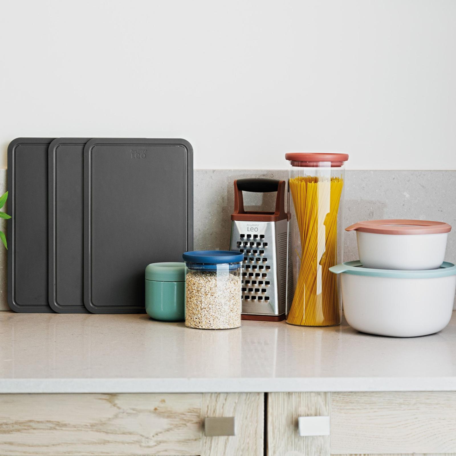 This Legacy 3-Piece Cutting Board set is designed for a perfect fit in the LEO knife block Legacy. Each board is designed to serve a specific cutting purpose while ensuring the separation of vegetables and raw meat. Crafted from 100% BPA-free material, these versatile boards are not only environmentally friendly but also reusable and low-maintenance. Their innovative design prevents any liquids from escaping, keeping your kitchen countertop clean with grooved features for efficient drainage. The rounded edges offer a secure grip during handling, and these boards can also double as serving trays. After meal preparation, they can be conveniently placed in the dishwasher for easy cleaning, allowing you to savor your dinner without hassle. Each board is crafted from durable, 100% BPA-free plastic which is eco-friendly and reusable. Take a cutting board for every cutting task and keep your vegetables separated from your raw meat. Integrated juice groove: ideal for cutting meats and fruits. This attractive Leo cutting board is a real all-rounder that offers a good grip for secure cutting, slicing, dicing or other cooking tasks. Anti-skid base is to prevent movement on your countertop and ensures a good grip. Thanks to the elegant design with rounded edges, you can also use these boards as a serving tray for meat, bread, cheese, fruits or vegetables. Using colored boards ensures that low and high-risk foods are kept separate.
