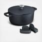 Leo Phantom stockpot is ideal for preparing generous portions of soups, stews, and sauces, offering exceptional heat retention and even cooking for satisfying, home-cooked meals. This pot is built with sustainable and healthy non-toxic, PTFE free, PFAS free non-stick CeraGreen ceramic coating, and recycled cast aluminum for no oil, no fat cooking. The lightweight body is easy to handle and boosted with a full disk bottom, this pot is designed for energy efficient cooking. This pot can be used on a variety of cooktops such as induction, electric, gas, glass top, and vitro-ceramic. Oven safe up to 400°F without silicone covers. Wide handles for a safe grip, even when you are wearing oven mitts or using potholders. Matching cover with condensation bumps on the lid's interior for self-basting. Ideal for making stocks, broths, soups, stews, and other liquid-based recipes. The draining holes on the lid make straining easier. It comes with two pot holders for the handles for your safety.