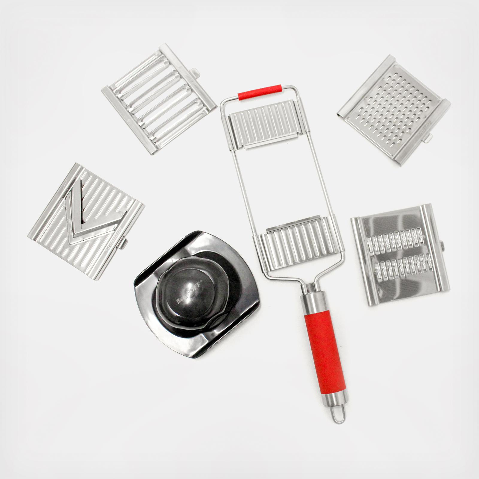 Multi Slicer with interchangeable extra-sharp stainless steel double blades. Cuts quickly in both directions.