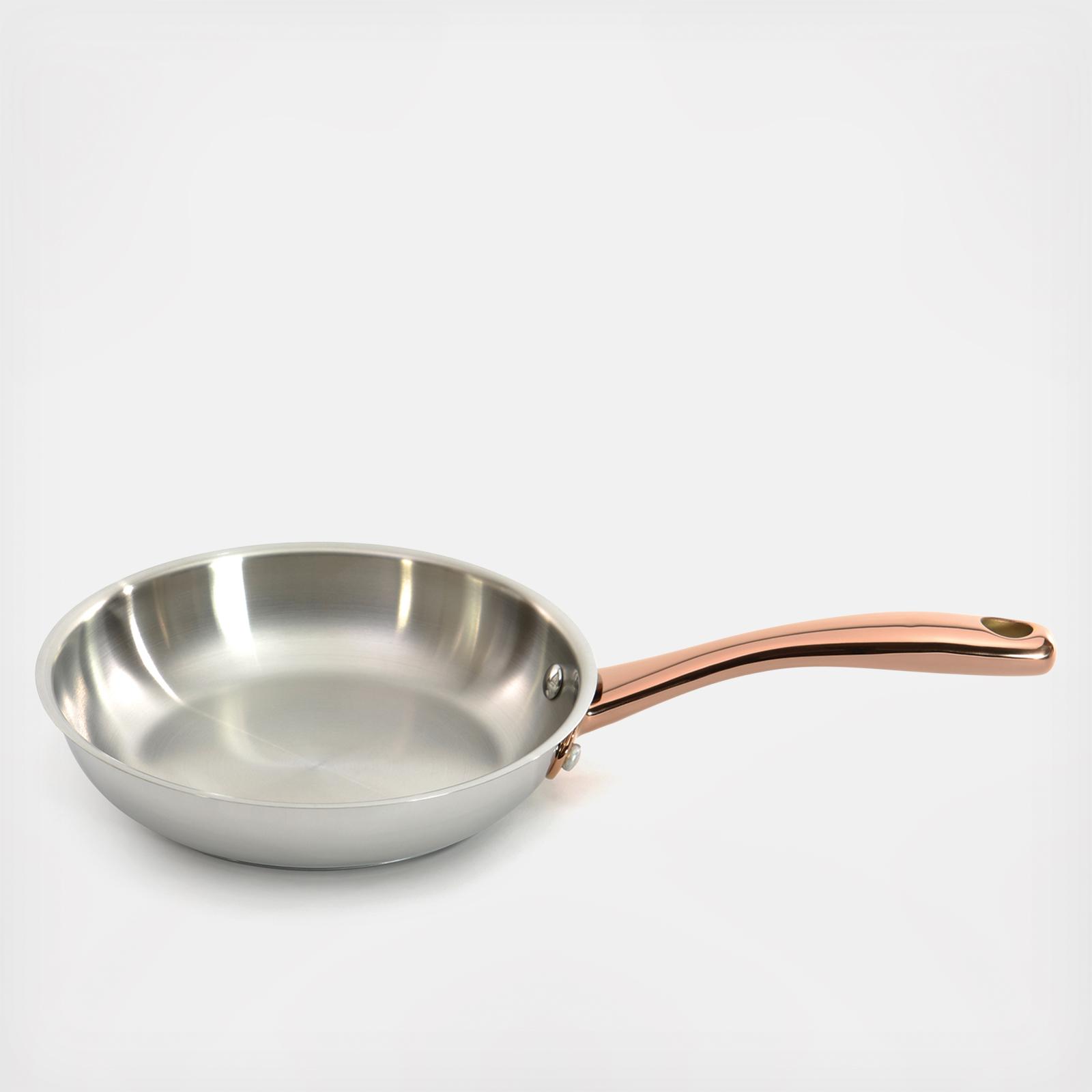 This fry pan is designed for energy-efficient cooking and even heat transfer throughout the complete surface. High-quality 18/10 stainless steel body with rose gold handles.