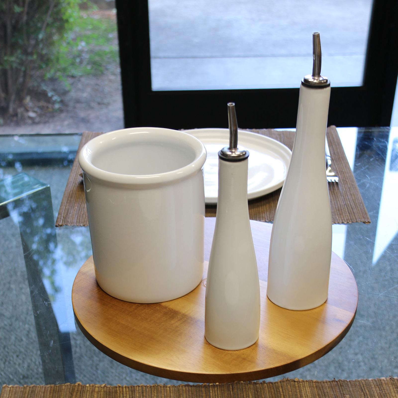 The classic, sleek design of this 2pc Oil and Vinegar Bottle Set ensures a non-cluttered look on your countertop or at the table. Drip-free and easy to use, these bottles are perfect for any type of décor from classic to modern to farmhouse. A versatile Utensil Crock with this Counterscape Set; keep those oft-used utensils close at hand and displayed beautifully in this crock. The crock can also double as a wine chiller; freeze for up to an hour before use to ensure holding temperature for your white and rosé wines.