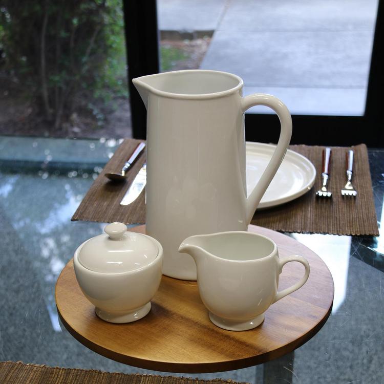 This 3-Piece Table Basics set includes a 2.5 qt. Pitcher which doubles as a flower vase. From lemonade to sangria to daisies and poppies, this 9" Pitcher will quickly become your entertaining workhorse. This Basics set also includes the Bistro Covered Sugar Bowl and Creamer. The Creamer is generously-sized and can also hold maple syrup for breakfast and brunch.