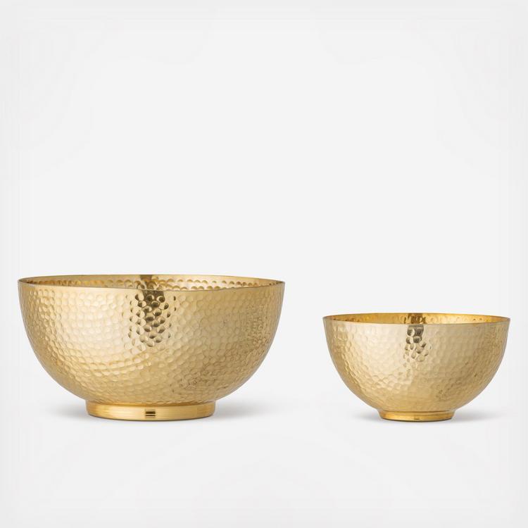 Add a touch of style to your kitchen or dining room with set of hand-hammered metal bowls. This bowl features a classic design, with a hand-hammered texture that adds a touch of sophistication to any setting. Whether you're serving up chips at a party or mixing dry ingredients for a recipe, this versatile set of bowls is perfect for all your entertaining needs. Please note that this set is suitable for dry foods only and should be wiped clean with a damp cloth. Crafted from 100% metal, this set of bowls is built to last and will be a staple in your kitchen for years to come. The modern copper finish will elevate any interior design scheme and make them a focal point of your table setting.