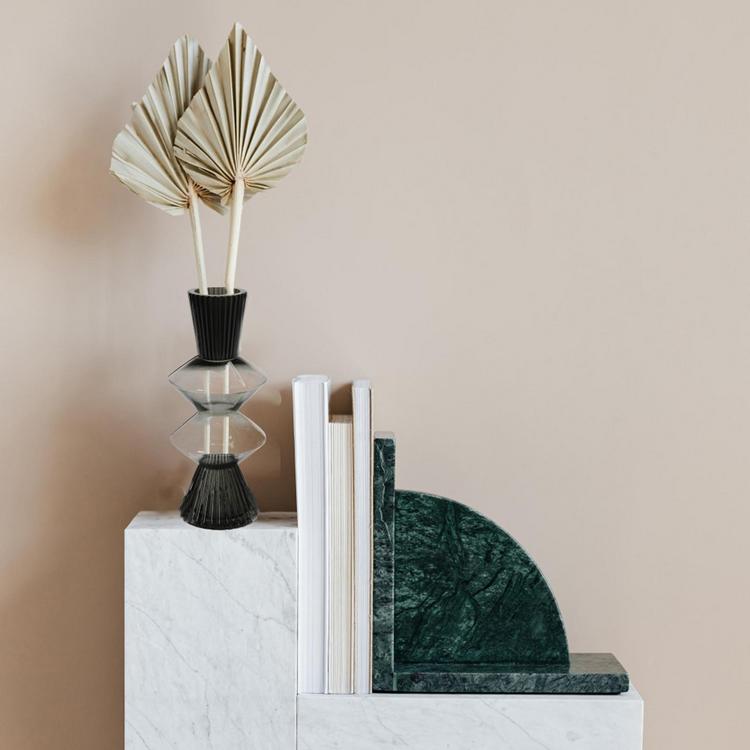 Add some flair and drama to the home with this glass fluted vase with curved triangles. This unique and eye-catching vase has a hue and a fluted shape that gives it a sleek and elegant look. The vase also features two curved triangles in the middle that create a striking contrast and a dynamic effect. Whether filled with fresh or artificial flowers, branches, or other decorative items, this vase will make a stunning centerpiece or accent piece for any room.