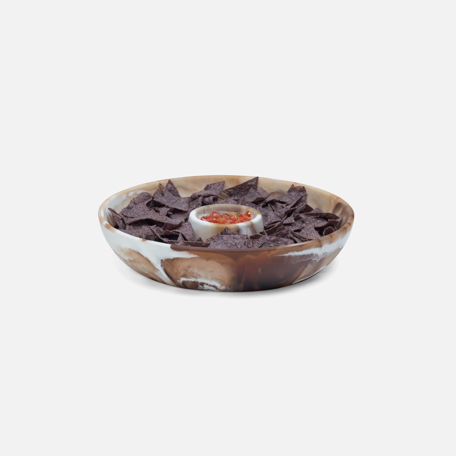 Bring joy to tabletops with Hugo, an elegant series of two-tone resin pieces in mesmerizing marbleized finishes and versatile sizes. Scaling from mini to oversized, each piece adds character with handcrafted details.