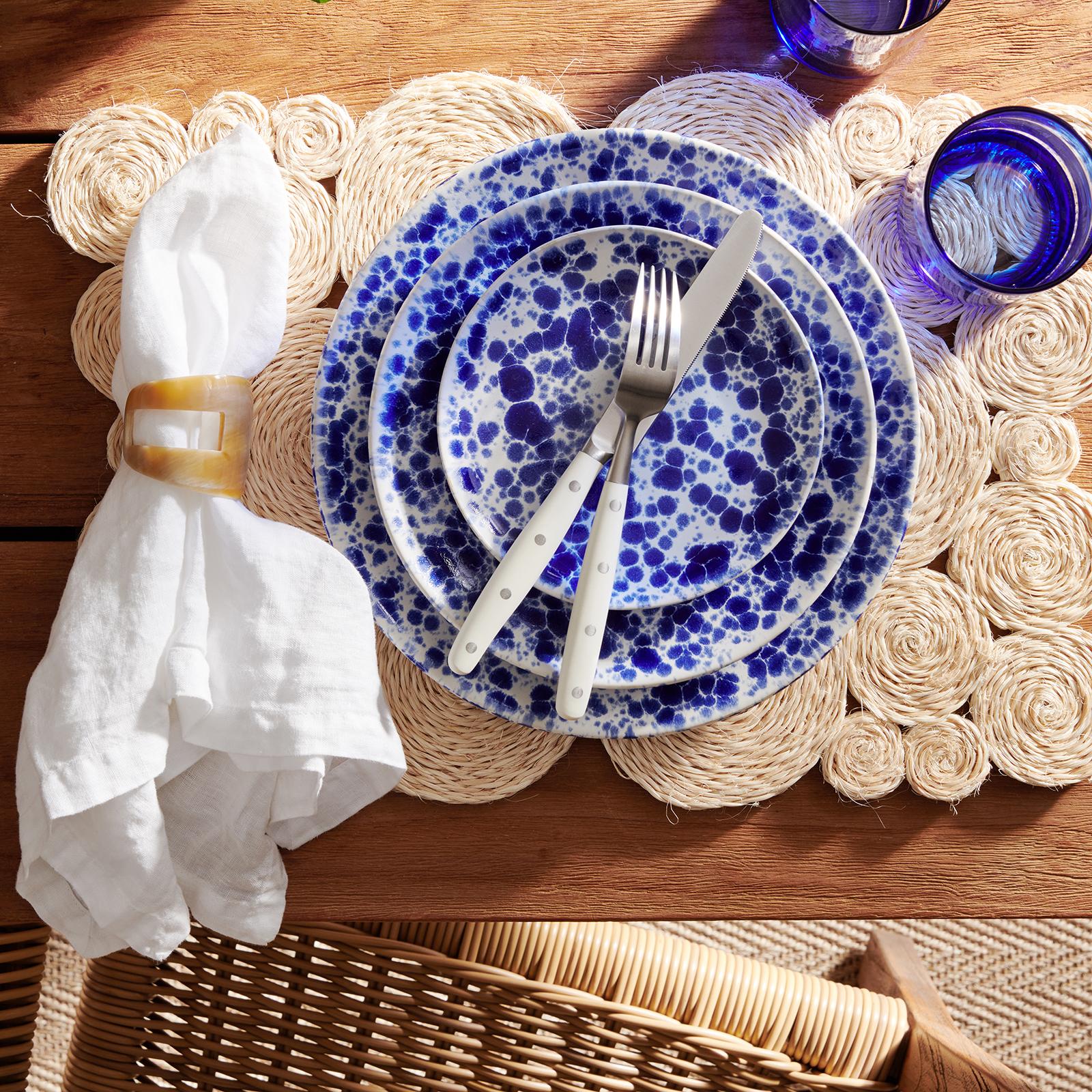 Splatters of royal blue over white give the Marcel collection of stoneware plates and bowls a celestial quality. Go bold with a full place setting, or mix and match for an eclectic look. Natural variation to be expected.