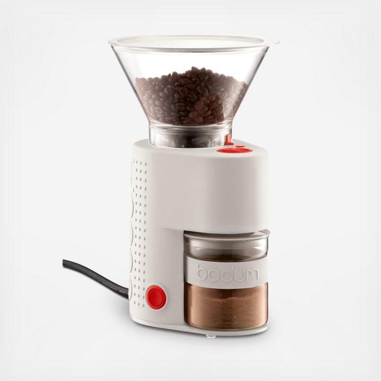 In a world of french presses and moka pots, a run-of-the-mill grinder just won't do. Start your morning off right with The Bistro Burr Grinder. This sleek designed workhorse crushes beans between stainless steel conical burrs rather than slicing them which preserves bean's intrinsic flavor and aroma and provides a consistent grind; no sharpening required. What you get is coffee that tastes like it is supposed to.