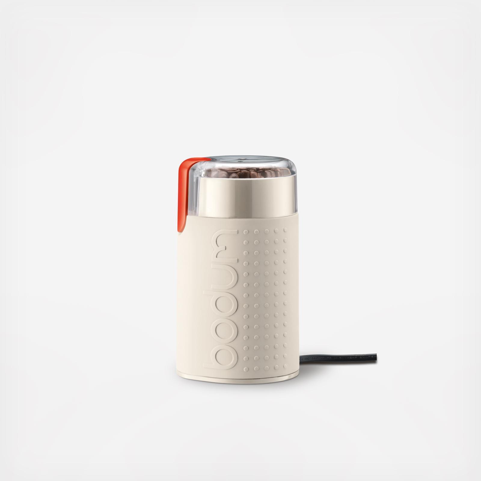 The Bistro Blade Grinder takes coffee beans from coarse to fine quickly and efficiently for fresh brewing. The strong, durable stainless steel cutting blade spins at a precise speed, and the transparent lid allows visibility to achieve desired coarseness. The grinder features an easy, push-button control that allows for pulse action or continuous grind.