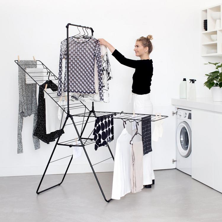 Save time and energy by drying your laundry naturally and save space by hanging out on this smart rack! With 82 Feet of flexible drying space across the rack, this model also includes a rockin’ rail for that little bit extra. and when it’s all dried and done, fold it flat with ease, for compact storage. xxl drying in size and benefits.