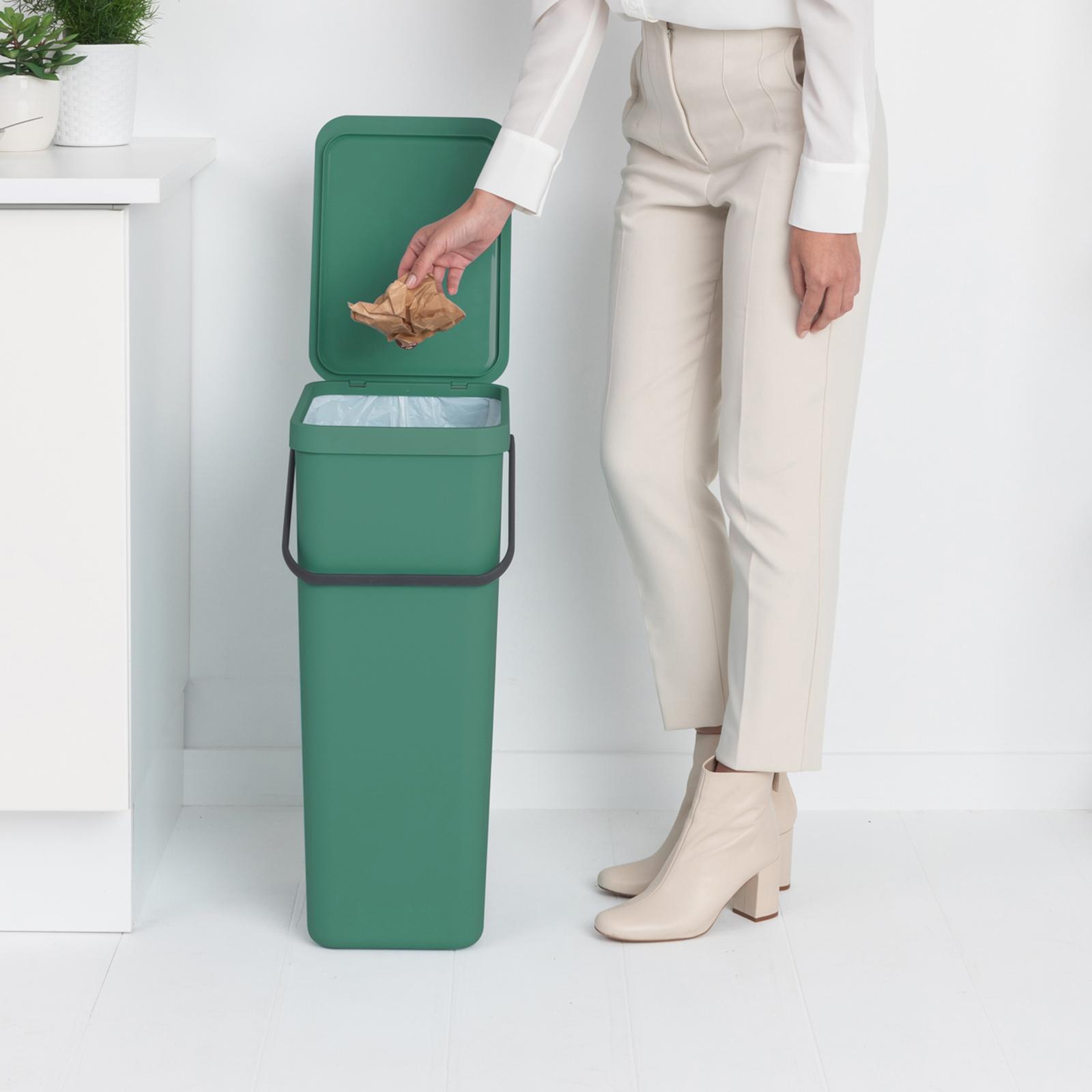 Feed your empty packaging, bottles, cans - and anything else you want sorted - to this handy 10.6 Gallon Brabantia Sort & Go Recycle Bin. It fits snugly in corners, flat against the wall, and has a large handle for easy carrying and emptying. Just what you need for a smooth running recycling operation at home!