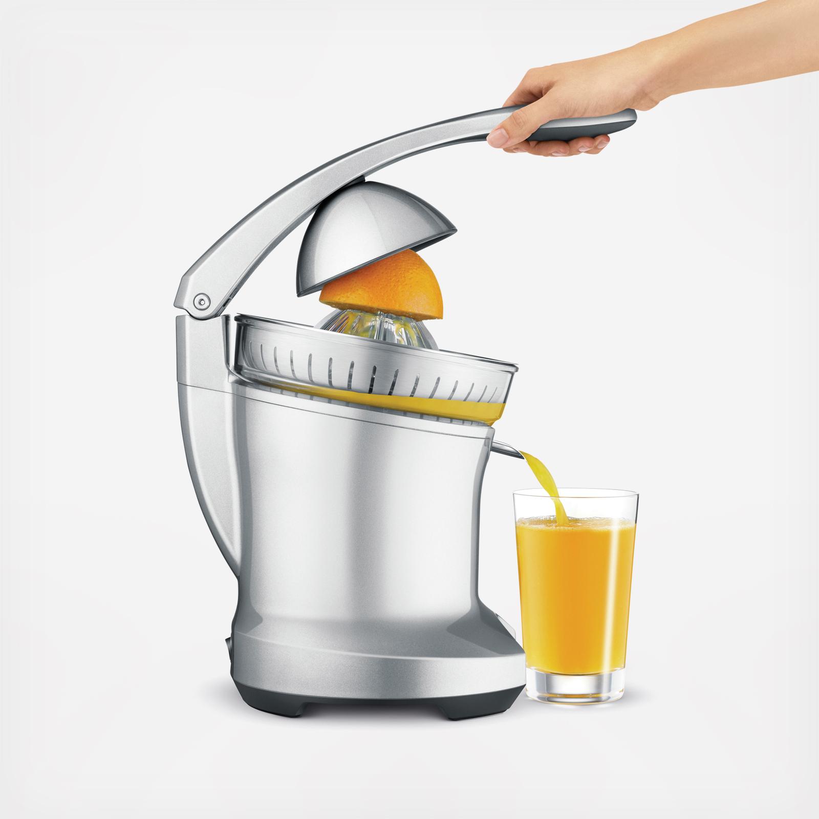 Get fresh juice every time without all the effort with the Citrus Press. The extraction system includes a finned juicing cone, fruit dome, and power assisted arm to provide grip and pressure to maximize juice output. Squeeze every last drop of juice from the smallest lime to the largest grapefruit. The simple, one-handed operation allows you to create a delicious juice with minimal effort. Simply turn on the machine, secure the arm in place, and you'll have fresh-squeezed juice in a flash. After juicing, simply flip the juicing spout upwards to prevent drips. Increase the quality of your morning orange juice, refreshing lemonades, and more with Breville's citrus press.