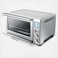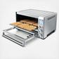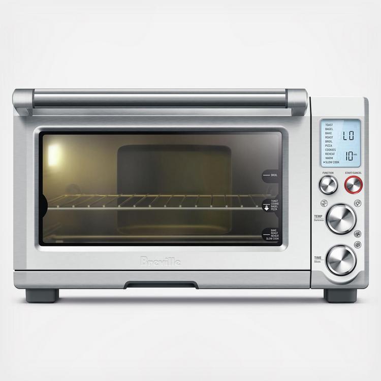 -1800-watt smart oven with non-stick interior and reinforced stainless steel body - 0.8 cu. ft. (6-slice) interior capacity cooks up to a 13-inch pizza - Convection fan (botton control) for fast and even heating - Element IQ delivers the right power at the right time for each pre-set program - 10 pre-set programs include toast, bagel, bake, roast, broil, pizza, cookies, reheat, warm and slow cook - NEW Slow Cook function designed for long cook times at low temperatures up to 10 hours - Bake, roast, cookies, and pizza programs feature a preheating cycle - Start/cancel button, function dial, temperature/darkness dial, time/slices dial and interior light button - Blue, back-lit LCD display to easily view the built-in smart functionality - Temperature conversion button allows the Fahrenheit temperature reading to be converted to Celsius - Frozen foods defrost button adds the additional time required to defrost then toast/cook frozen bread, bagels and pizza - Interior oven light automatically turns on when you open the door and at the end of the cooking cycle - 3 rack positions (top, middle, bottom) with auto-rack eject for easy removal of hot items in middle position - Timer with auto shut-off and sound alert - Insulated dual-wall door and glass window - Quick and easy clean-up with pull out crumb tray