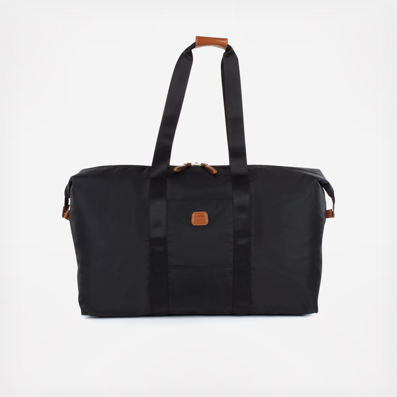 A stylish foldable duffel that fits all the extra 'stuff' we carry along when we travel. Main compartment includes a zippered closure with one interior pocket and one exterior-front pocket for smaller items. Long straps allows bag to be worn over shoulder. Great weekender duffle with Tuscan leather trim. 2-in-1 bag includes a Cross body purse that serves double-duty as the interior zippered pocket. Duffel folds away into small pocket pouch for easy packing. Back side features a slide sleeve for sliding over a luggage pull-handle. 5 Year Limited Manufacturer's Warranty