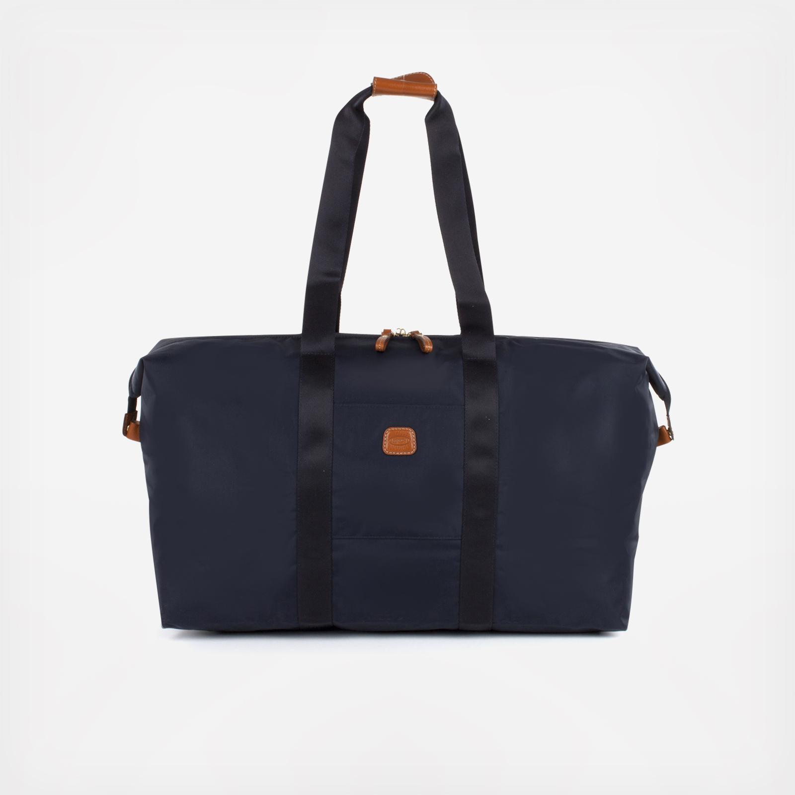 A stylish foldable duffel that fits all the extra 'stuff' we carry along when we travel. Main compartment includes a zippered closure with one interior pocket and one exterior-front pocket for smaller items. Long straps allows bag to be worn over shoulder. Great weekender duffle with Tuscan leather trim. 2-in-1 bag includes a Cross body purse that serves double-duty as the interior zippered pocket. Duffel folds away into small pocket pouch for easy packing. Back side features a slide sleeve for sliding over a luggage pull-handle. 5 Year Limited Manufacturer's Warranty