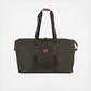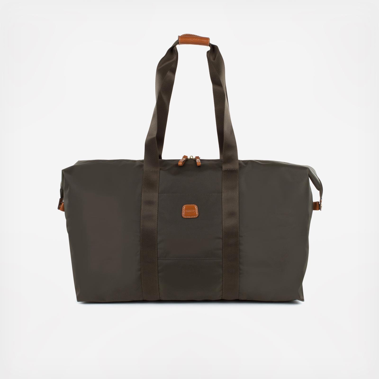 A stylish foldable duffel that fits all the extra 'stuff' we carry along when we travel. Main compartment includes a zippered closure with one interior pocket and one exterior-front pocket for smaller items. Long straps allows bag to be worn over shoulder. Great weekender duffle with Tuscan leather trim. 2-in-1 bag includes a Cross body purse that serves double-duty as the interior zippered pocket. Duffel folds away into small pocket pouch for easy packing. Back side features a slide sleeve for sliding over a luggage pull-handle. 5 Year Limited Manufacturer's Warranty