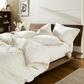 Melt into sleep with this buttery-smooth Luxe Sateen Duvet Cover by Brooklinen. Made from long-staple cotton, this duvet cover has no less than a 480-thread count, ensuring a luxurious and soft feel. Large buttons and corner ties are less likely to come undone and they make changing this duvet cover a breeze. This duvet cover is the ultimate in easy care, so you can throw it in the machine for a cold wash and tumble-dry low to promote longevity.