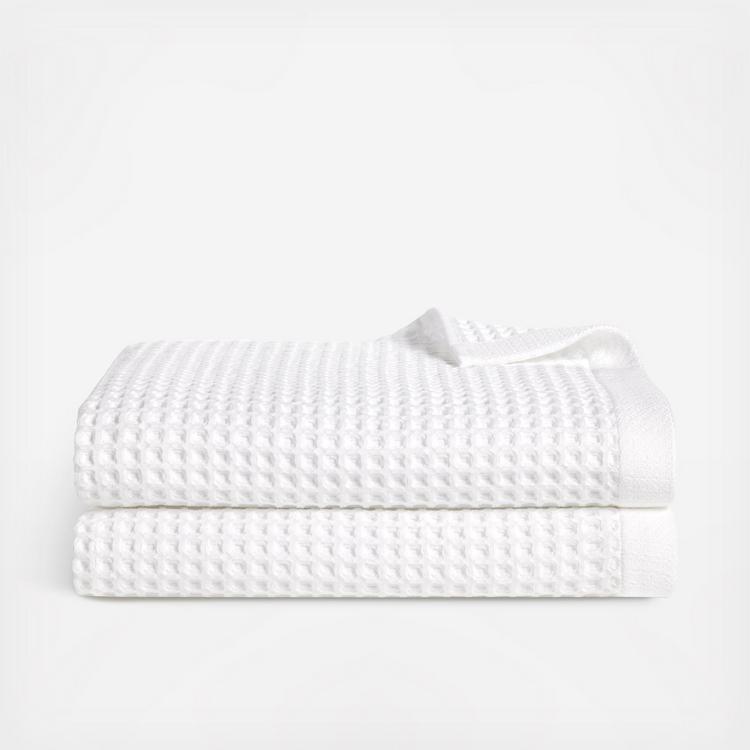 Add texture to your routine with our new and exclusive, innovative waffle collection, designed to reduce shrinkage and maintain its shape after wash and wear. This style’s lightweight and unique honeycomb weave traps and soaks up water fast, for quick and efficient drying. Made from long-staple Turkish cotton, and pre-washed for softness and an extra plush feel. Comes in a set of two.
