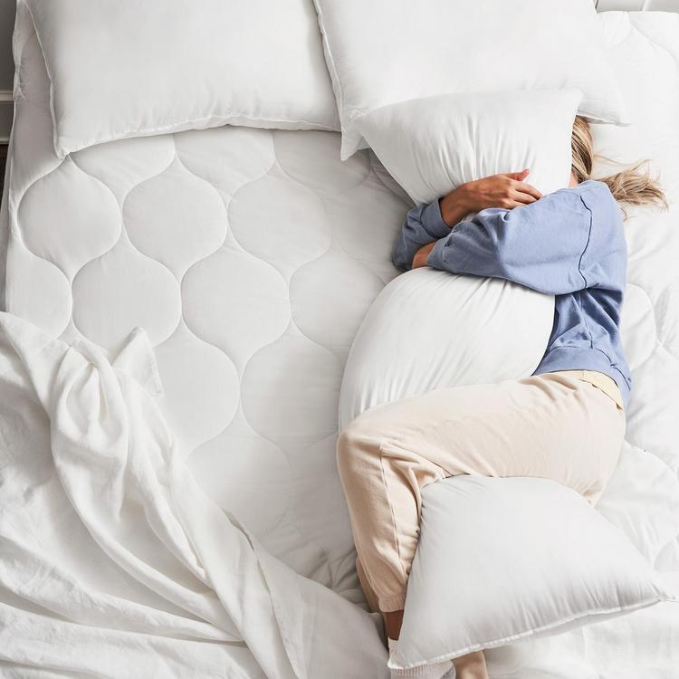 Cuddle your way to comfier snoozes with supportive (allergy-free!) Cloud Body Pillow that’s stuffed with marshmallowy soft recycled fluff. Perfect for side, stomach, and back sleepers alike, also provides extra support during pregnancy. Shell is woven from earth-friendly lyocell fiber. Ultra-smooth lyocell fiber absorbs moisture more efficiently than cotton, keeping your skin feeling cool and dry throughout the day and night. Each pillow recycles approximately 73 plastic bottles.