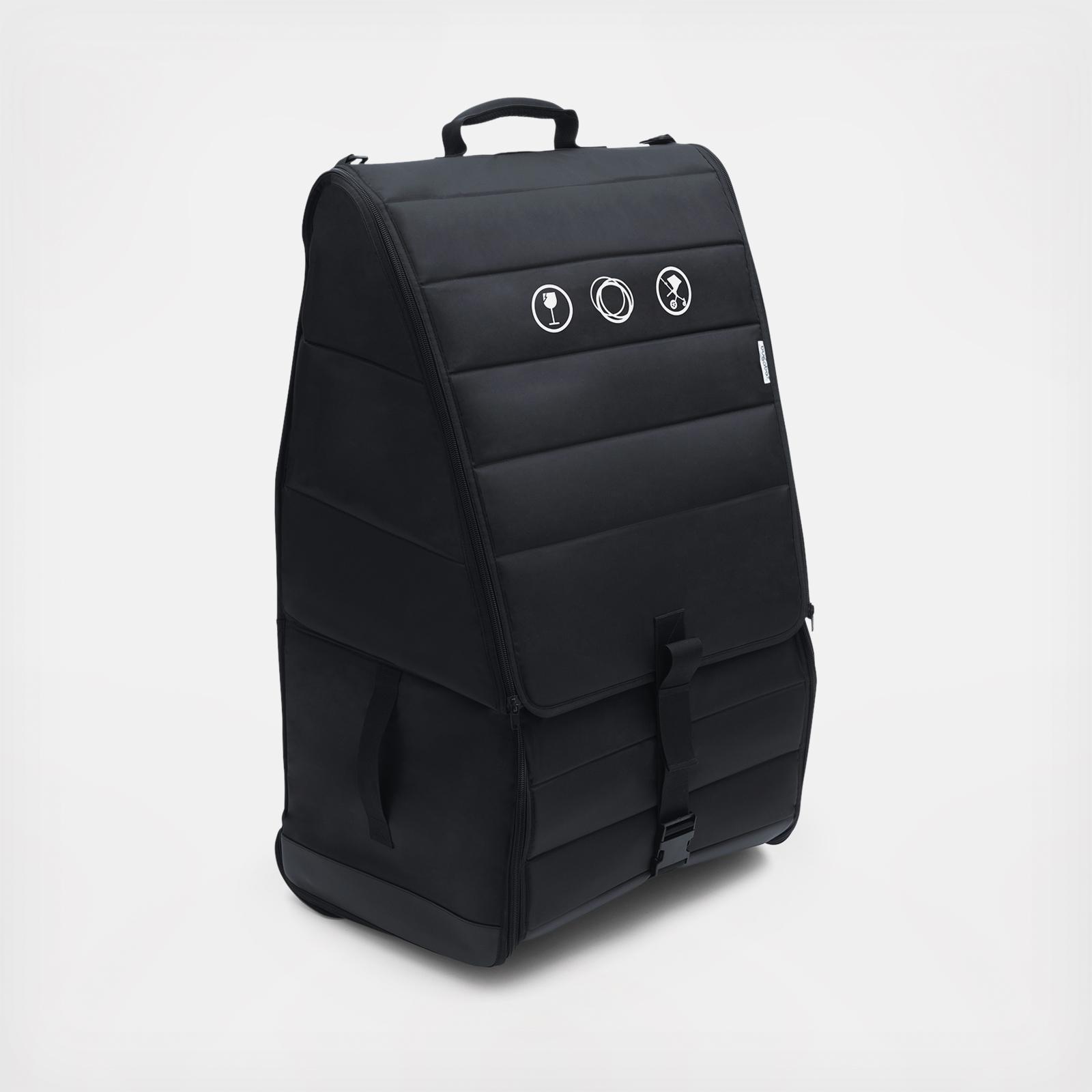Keep your Bugaboo stroller always protected from water damage and scratches with the Bugaboo comfort transport bag. Featuring comfortable carry handles, shoulder straps, and handy wheels, rolling from the airport baggage claim to a taxi stand will seem like a breeze. The separate bag for the front and rear stroller wheels will keep the bag clean.