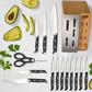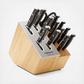 This 15-piece Calphalon cutlery set offers a selection of essential knives for chopping, dicing, slicing, and more. The bolstered, stainless steel blades stay sharp for a lifetime, due to SharpIN technology ceramic sharpeners built into the knife block.