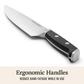 This 7-Piece Calphalon cutlery set offers a selection of essential knives for chopping, dicing, slicing, and more. The bolstered, stainless steel blades stay sharp for a lifetime, due to SharpIN technology ceramic sharpeners built into the knife block.