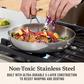 Designed for home chefs who value quality and performance, the Calphalon Premier Stainless Steel 10" Fry Pan is built for precision cooking and lasting durability. Engineered with ultra-durable, non-toxic, 5-layer construction and heat-responsive aluminum core, this pan features Calphalon Turbo Temp™ technology and heats up to 30% faster, so you can getting cooking faster. Whether you're whipping up delicate sauces or creating the perfect sear, this frying pan delivers flawless results for crowd-pleasing meals. The brushed stainless steel finish adds a professional touch to your kitchen, while its oven-safe, all-stovetop compatibility ensures effortless cooking from start to finish. Cook with ease and bring restaurant-quality performance to your kitchen with Calphalon Premier Stainless Steel cookware. (Calphalon Premier Stainless Steel vs. Cuisinart Professional Series Stainless Steel)