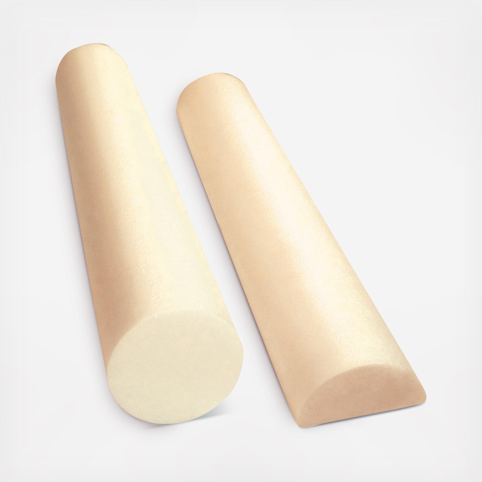 Polyethylene foam rollers are perfect for positioning, balance, postural and muscle re-education, spinal stabilization, body awareness and coordination, and ranging and strengthening activities. Round rollers offer progressive exercise sequences - user can graduate from an easier (smaller diameter) to a more difficult (larger diameter) roller. Half round roller is a great tool for ankle stretching and knee rehabilitation. Diameter refers to the width of the half-round profile. The foam is strong enough to be used by large adults and active children. Foam rollers are available in 48", 36", 30", 24", 18" and 12" lengths and 3", 4", 6" or 8" diameters with either a round (circular) or half-round (semi-circular) profile. Polyethylene foam rollers are available with standard formula in white and blue. They are also available with anti-microbial additive, in beige. 6" x 36" and 6" x 12" half rollers available sliced or fully extruded so that the bottom has an integral skin. Choose the roller that is right for you!