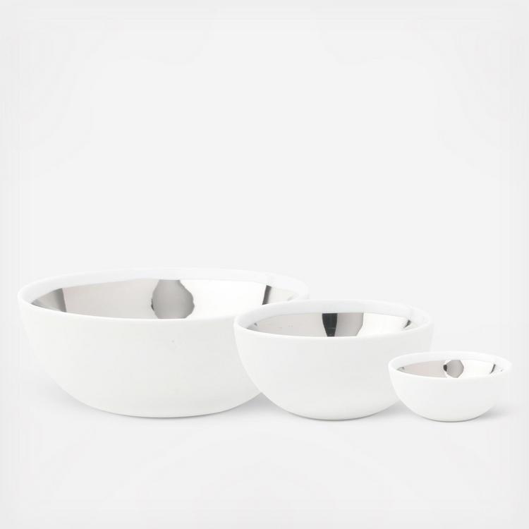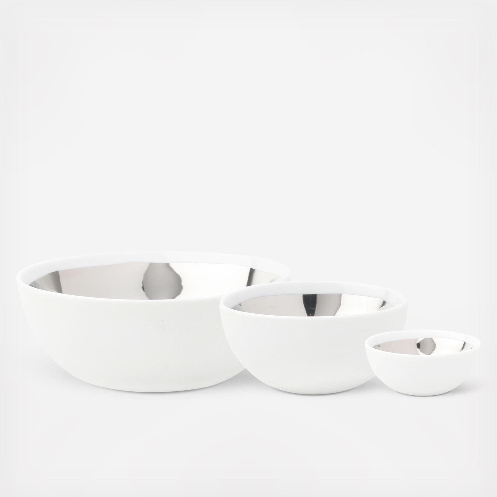 Elevate your tablescape with the handmade, hand-painted Dauville Collection, which combines dashing glamour with chic minimalism. The exterior features a creamy, textured bisque finish, which contrasts beautifully with the gold or platinum interior. This purposefully irregular metallic glazing reflects the artisan influence of the collection. Hand crafted from porcelain with hand-painted metallic finish.